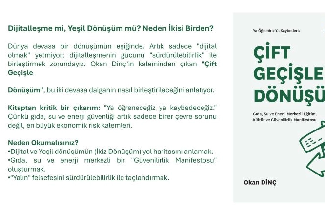 İş dünyasında son yıllarda sıkça dile getirilen “ikiz dönüşüm” kavramı, teknolojik ilerleme ile çevresel sürdürülebilirliği aynı strateji içinde birleştirmeyi ifade ediyor. Bu yaklaşımın önemine dikkat çeken isimlerden biri de yazar ve düşünce lideri Okan Dinç. Dinç, kaleme aldığı Çift Geçişle Dönüşüm adlı çalışmasında, dünyanın neden artık tek bir dönüşümle yetinemeyeceğini detaylı biçimde ele alıyor.